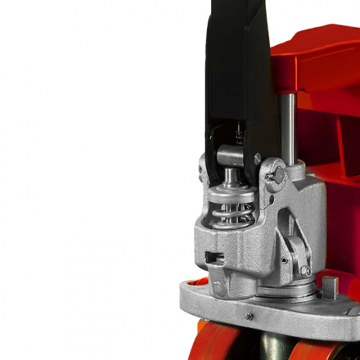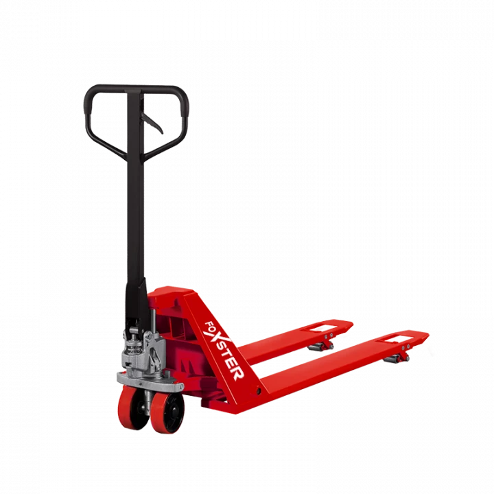 Гидравлическая низкопрофильная тележка FOXSTER AC Low 52, грузоподъемность 2000 кг предназначена для поднятия и перемещения грузов. Благодаря конструкции с низкой высотой вил (52 мм), погрузку возможно осуществлять практически с пола. Рукоять тележки имеет эргономичное покрытие, благодаря которому предотвращается скольжение рук и повышается комфорт работы оператора. Полиуретановые колеса и ролики отличаются высокой износостойкостью и не оставляют следов на поверхности пола. Устройство используется в складских помещениях и производственных цехах.