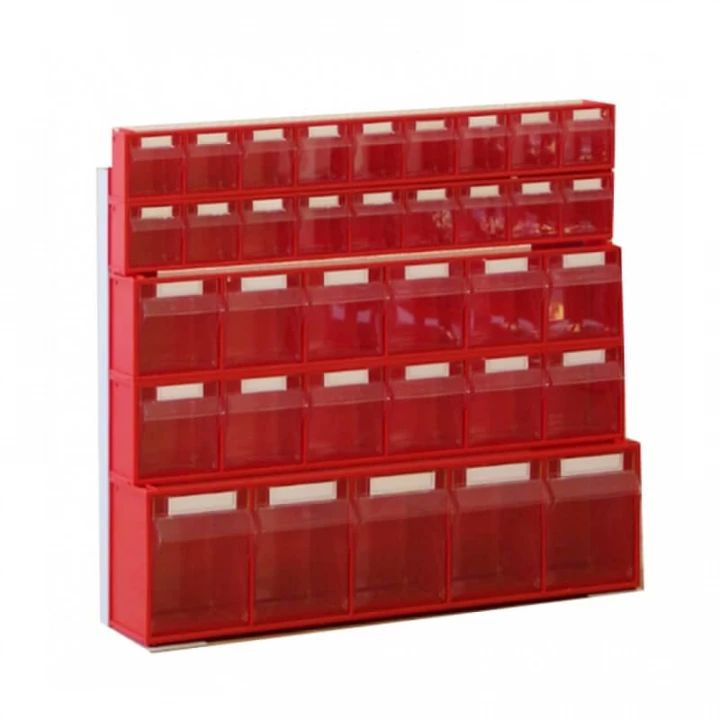 Серый (рама), красный/прозрачный (коробы)
